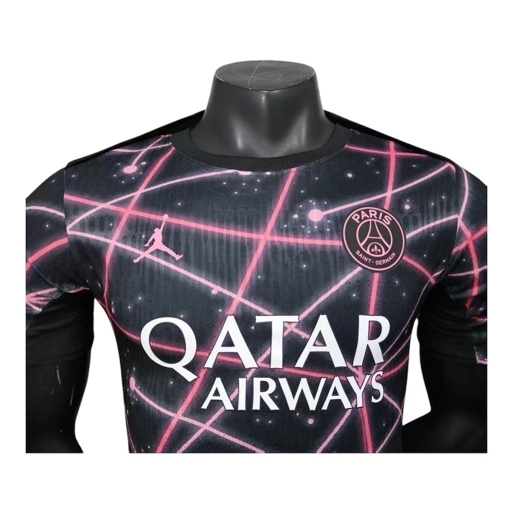 Camisa Paris Saint-German Pré-jogo 25/26 – Jogador Jordan Masculina – Preta com detalhes em rosa
