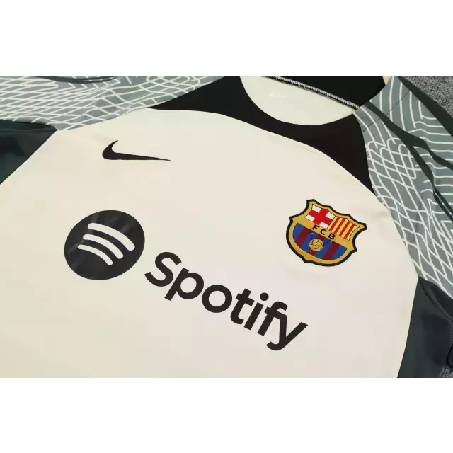Kit Treino adulto – Camisa e Shorts – Barcelona Nike 23/24 – Bege e verde